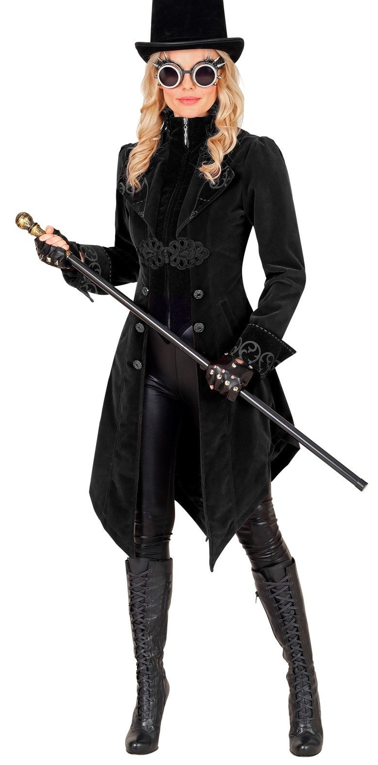Chaqueta Steampunk o Pirata Larga Negra Efecto Cuero
