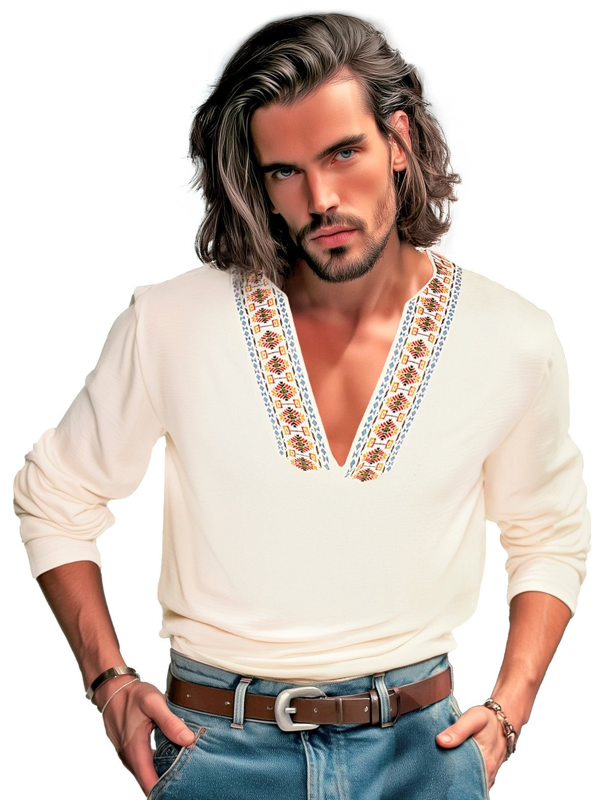 Camiseta Hippie Blanca Estilo Dashiki para Hombre