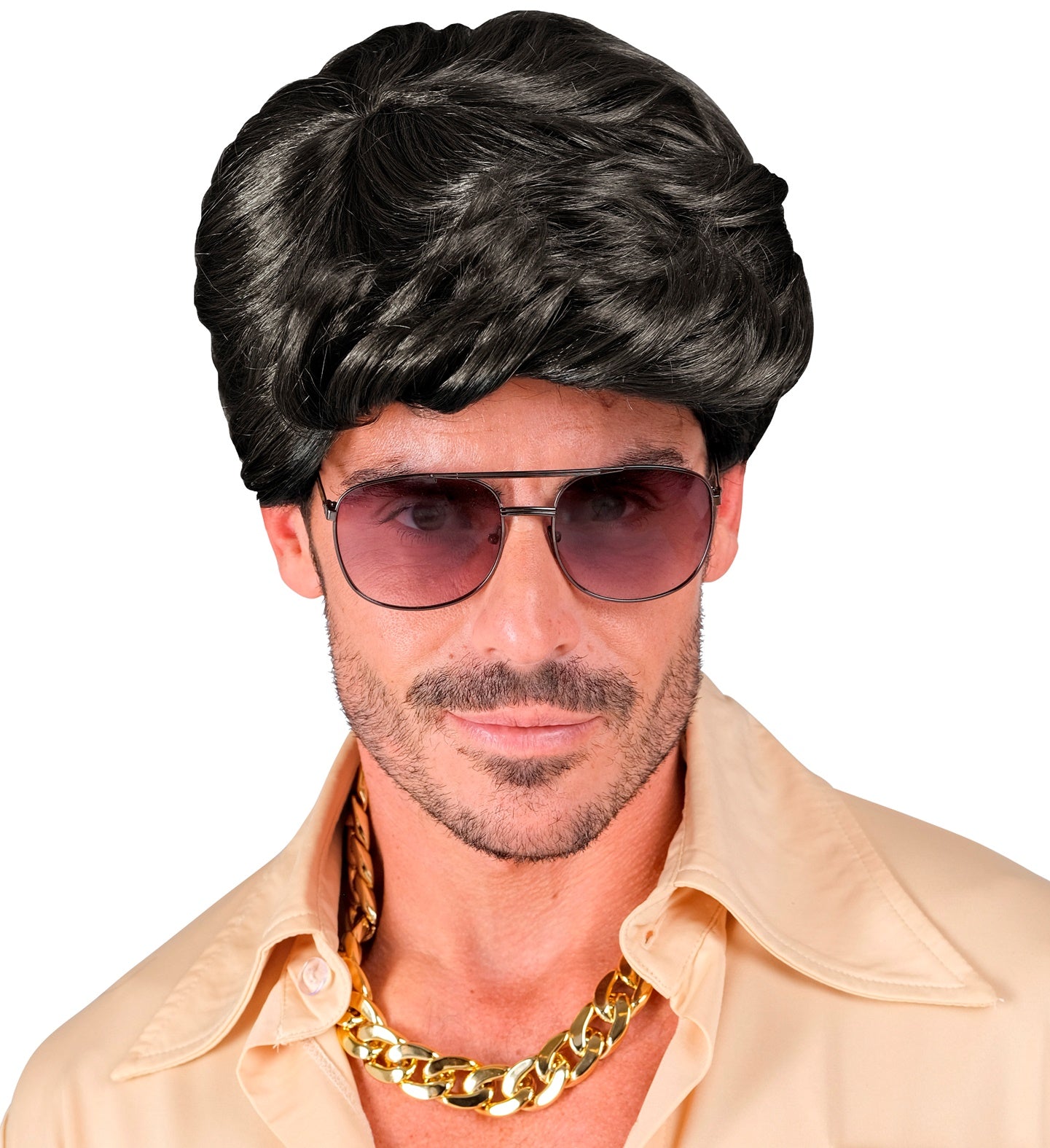 Peluca Morena de Rockero Larga con Mechas Rubias