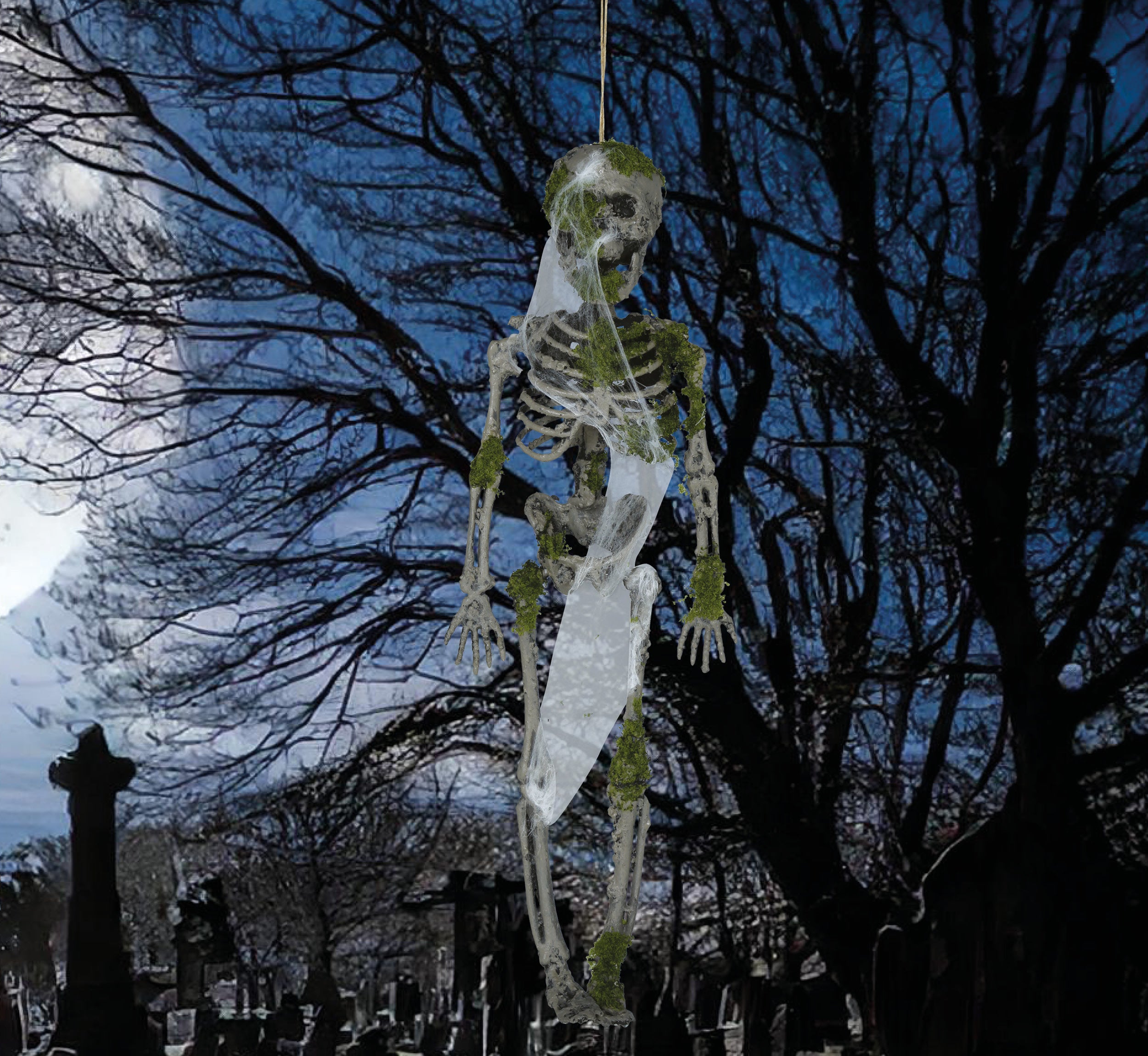 Encuentra también todos los elementos decorativos más llamativos como esqueletos de tamaño real, lápidas, candelabros y las figuras más macabras que te puedes imaginar para asustar al miedo en el día más aterrador del año.