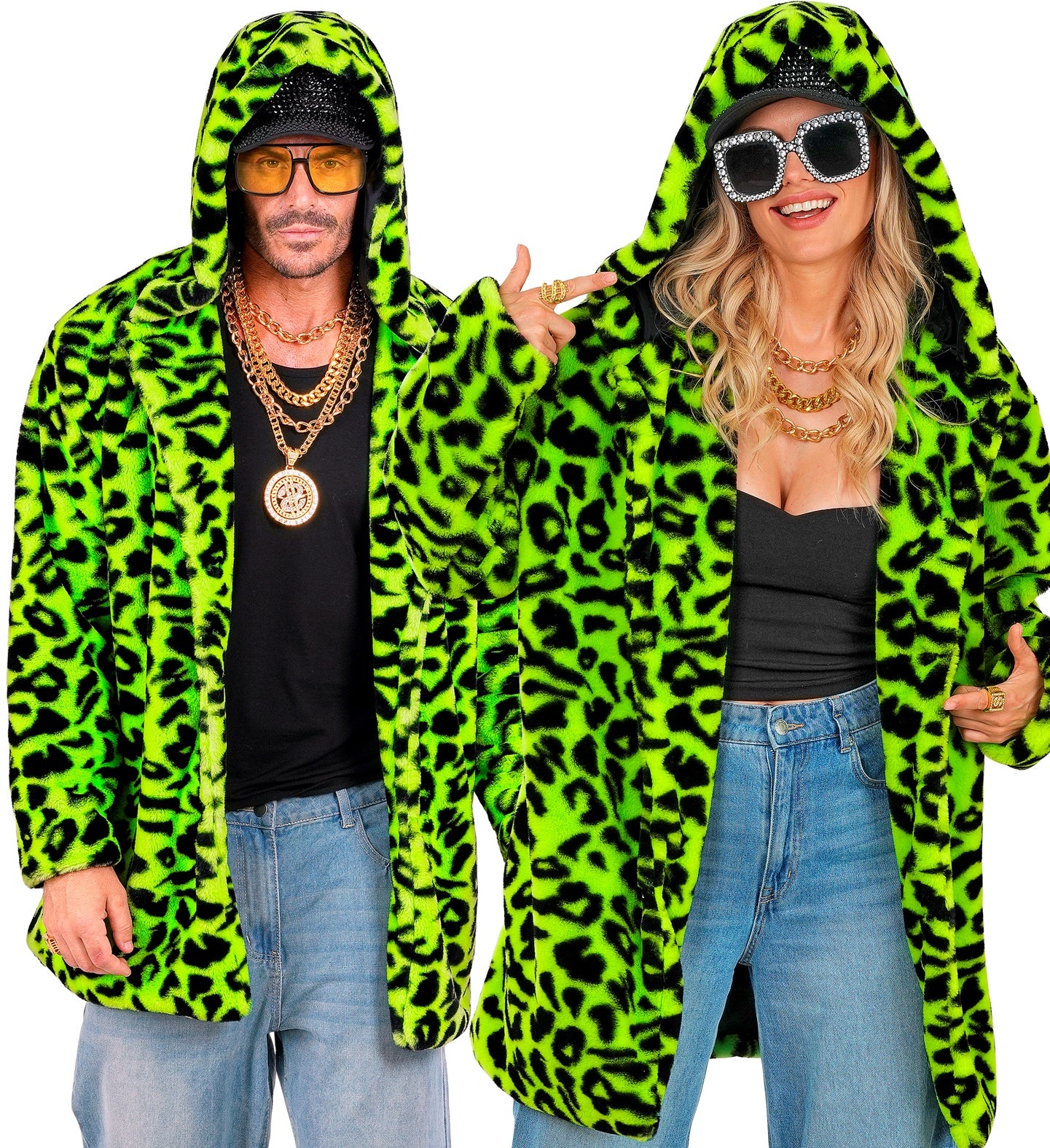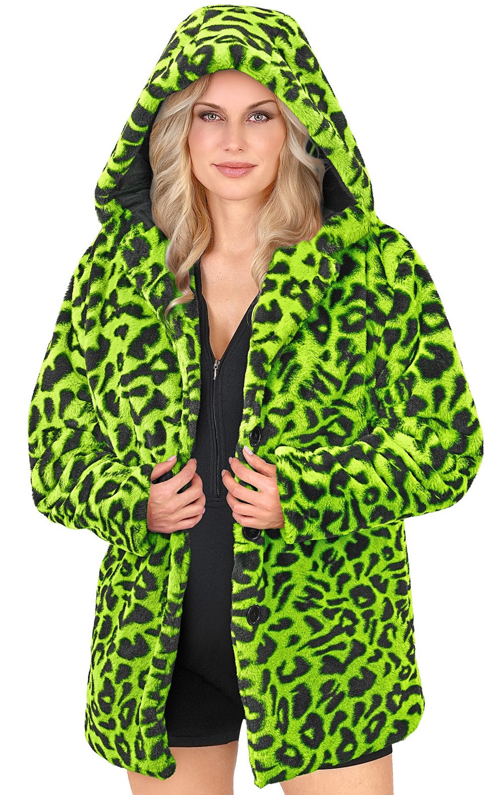 Chaqueta de Peluche de Leopardo Verde Neón para Adulto