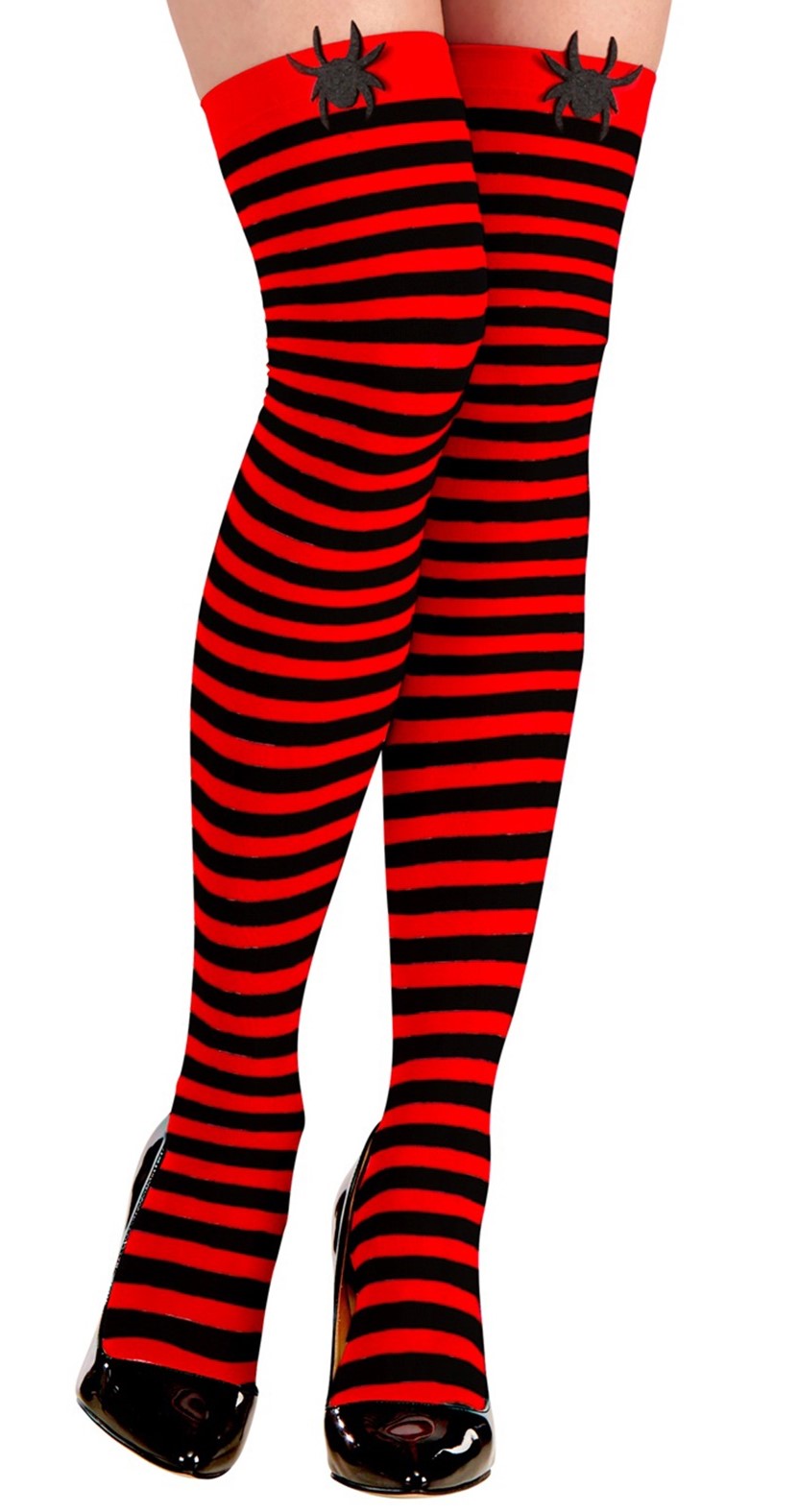 Medias de Rayas Rojas y Negras con Arañas para Mujer