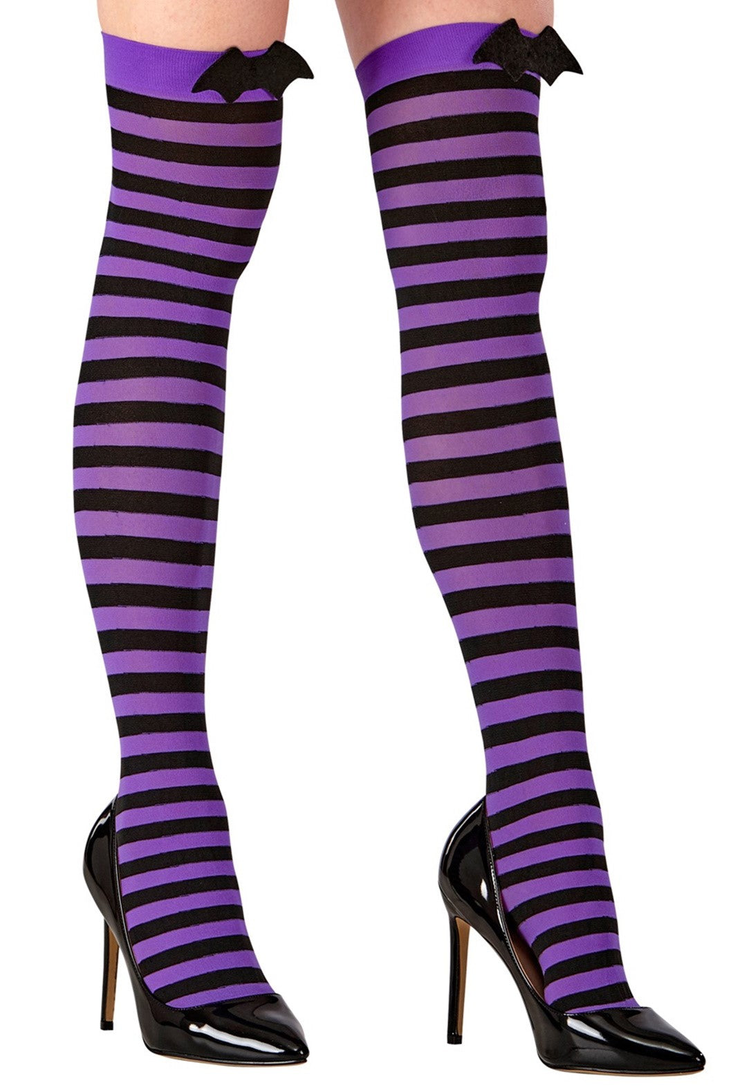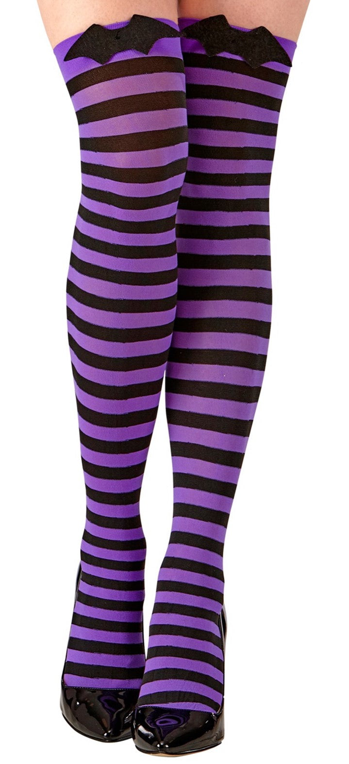 Medias de Rayas Moradas y Negras con Murciélago para Mujer