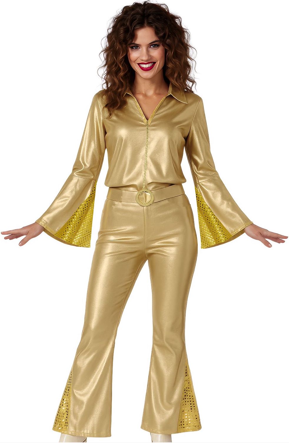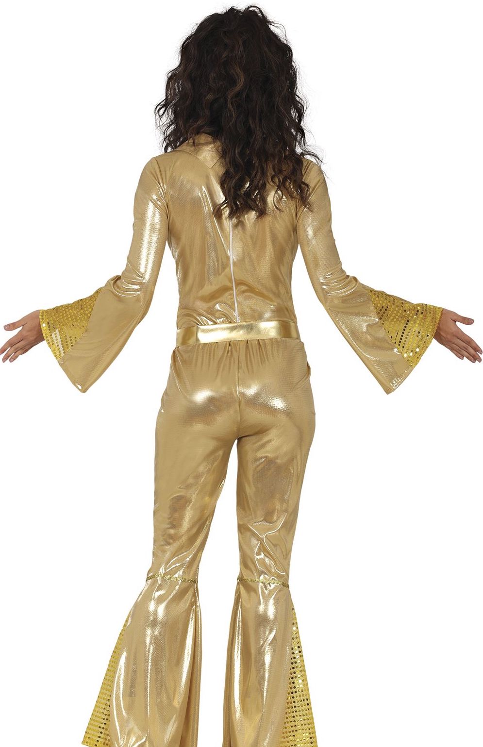 ¿Estás buscando un disfraz disco para tu fiesta? Con el disfraz disco dorado con brillos para adulto tendrás el mono perfecto para acudir a tu fiesta como una verdadera chica disco de los años 70, y destacarás en tu fiesta de disfraces por tu gran originalidad.