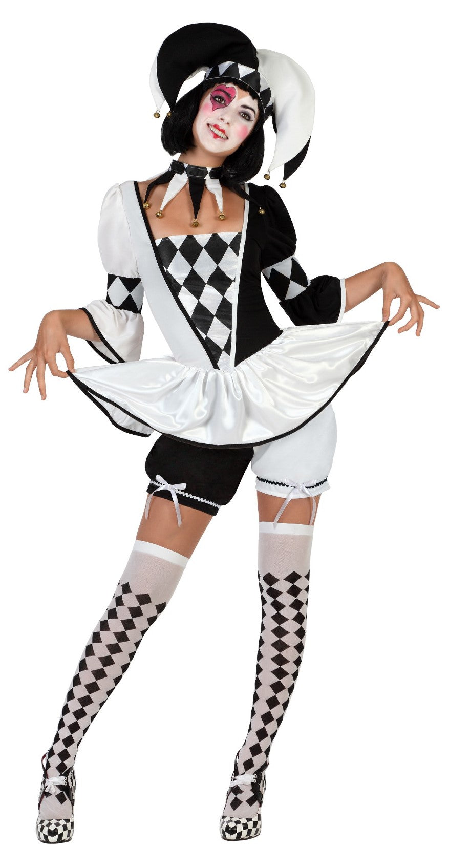 Incluye: Vestido, pololos, accesorio para cuello con cascabeles y gorro con cascabeles. Este modelo de mujer bufona también sirve para arlequín. Es muy divertido y original, con un lazo rojo y grande en la parte trasera. En nuestra tienda de disfraces también puedes encontrar las medias y pinturas de todo tipo, para que puedas maquillarte a tu gusto. La talla XS, equivale a una 36/38 aproximadamente. La talla M/L equivale a una talla 40/42 aproximadamente