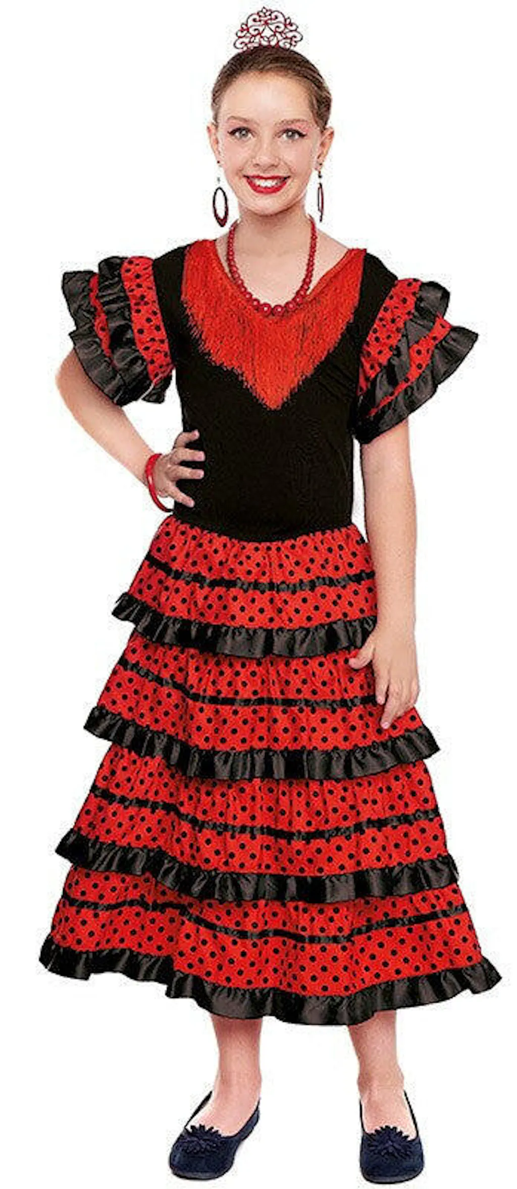 Disfraz de Sevillana Negro y Rojo para Niña Sevillanas y Flamencas Infantiles Partilandia