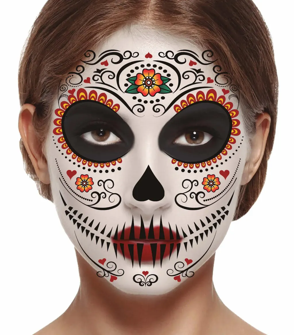 ¿Quieres convertirte en una auténtica catrina pero lo tuyo no es el maquillaje? Este set de calcomanías faciales de catrina hará que te transformes en tu personaje favorito de la forma más cómoda y sencilla.